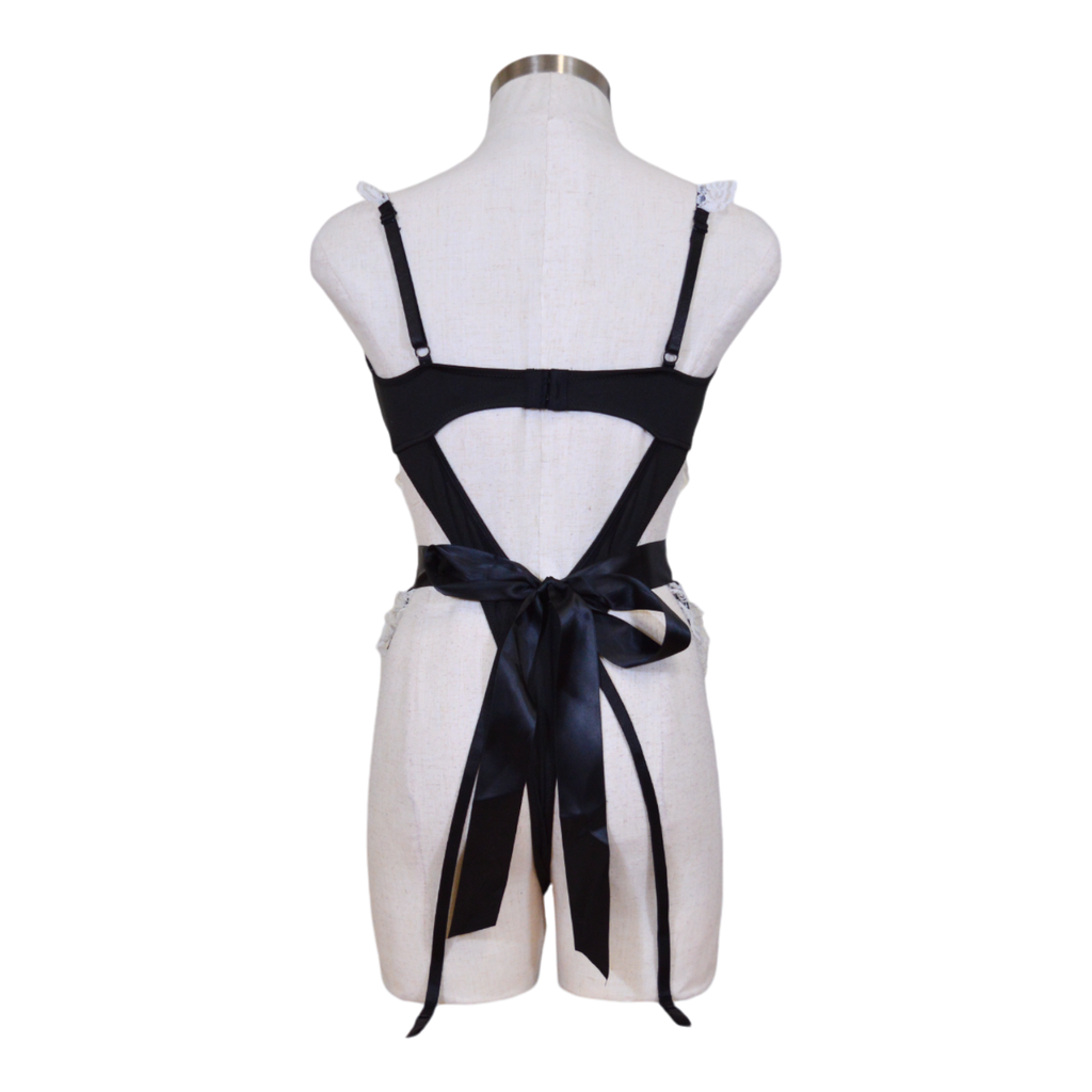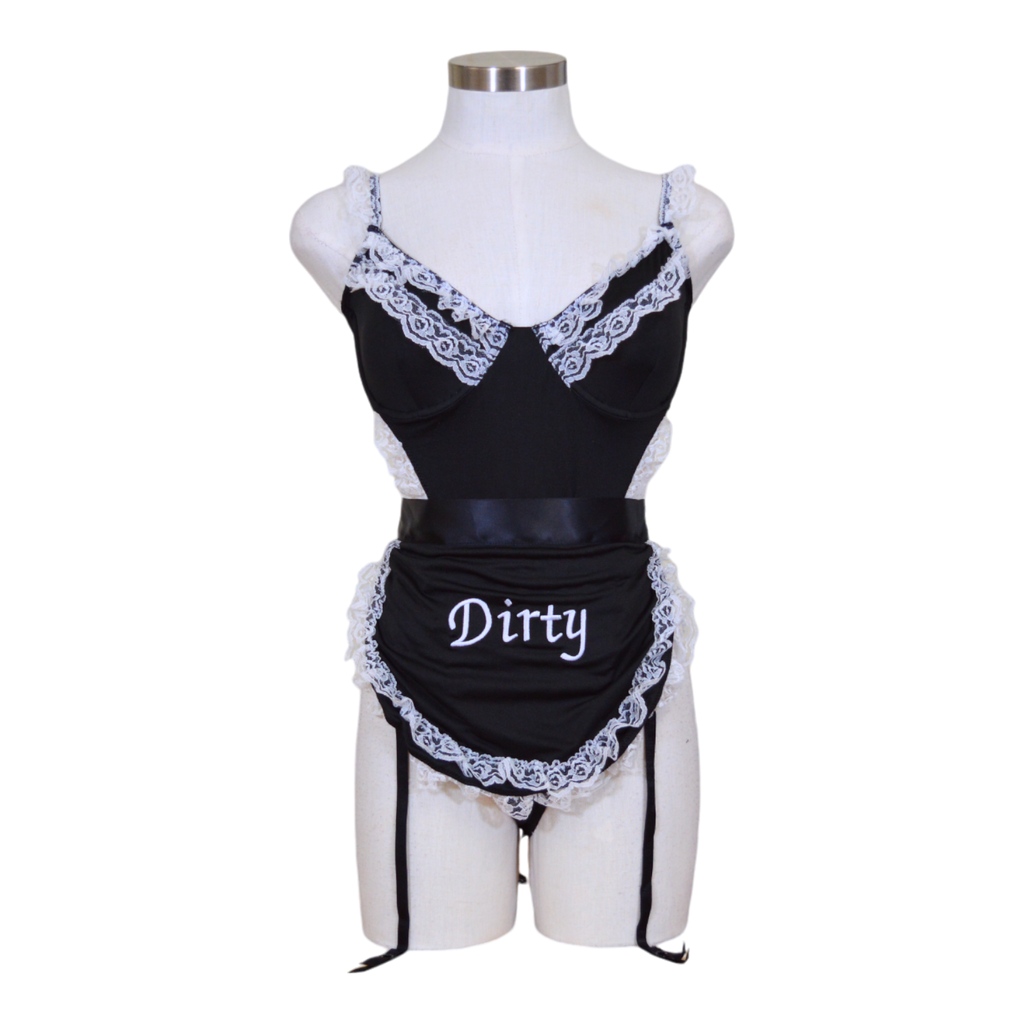 Transform into a playful and flirty maid with this teddy style costume. Featuring garter straps, lace straps, and a charming apron, exude confidence and charm with this lingerie-inspired ensemble. Who says cleaning can't be fun?