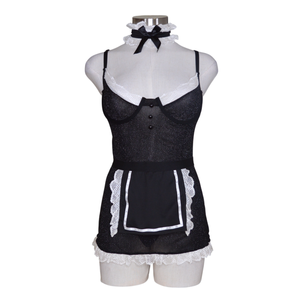 Glitter Mesh Chemise, G-string Panty and Ruffle Choker