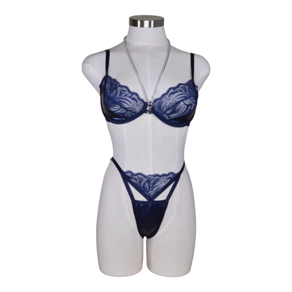 Darque Midnight Wet Look & Lace Underwire Bra & Thong.