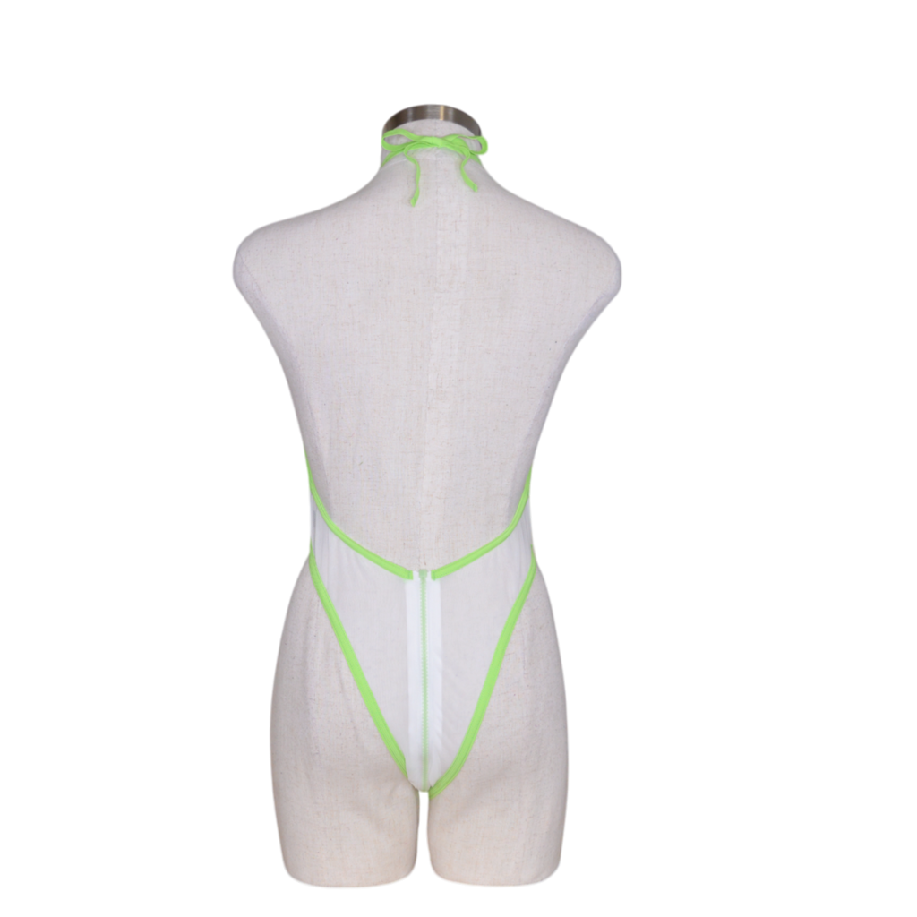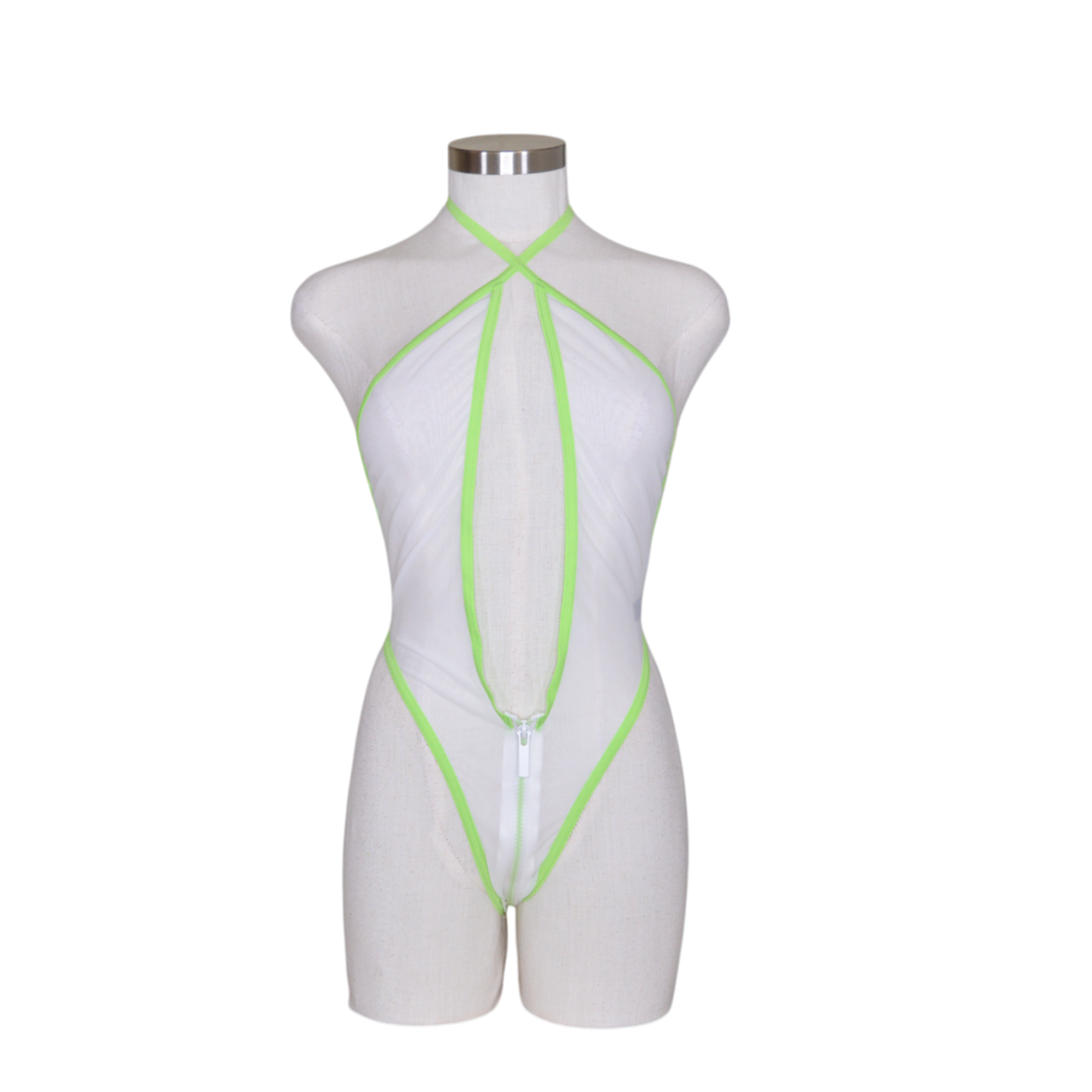 Glow-in-the-dark plunge zipper teddy with halter ties
