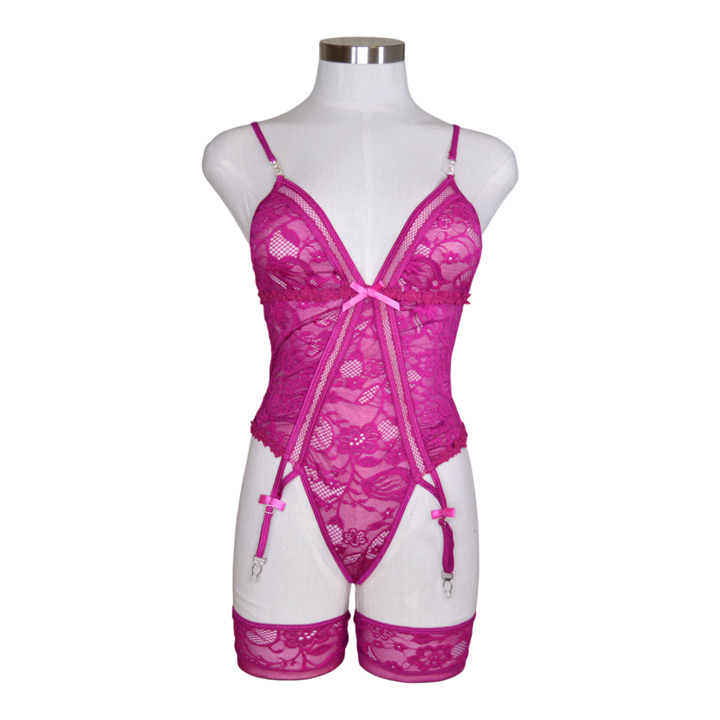 Dramatic Lace Garter Teddy & Stockings 2 pc Set.