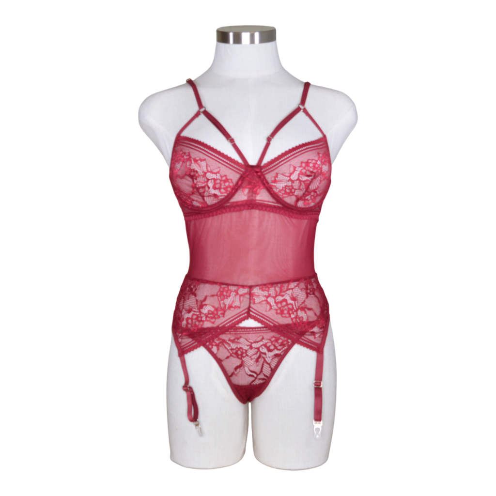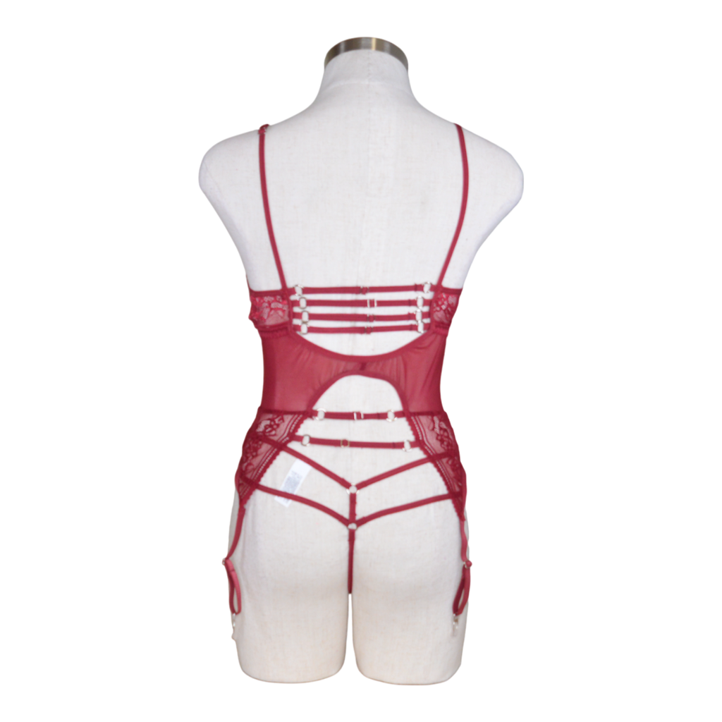 Untamed Floral Lace and Mesh Strappy Bustier with G-String 2 pc Set.