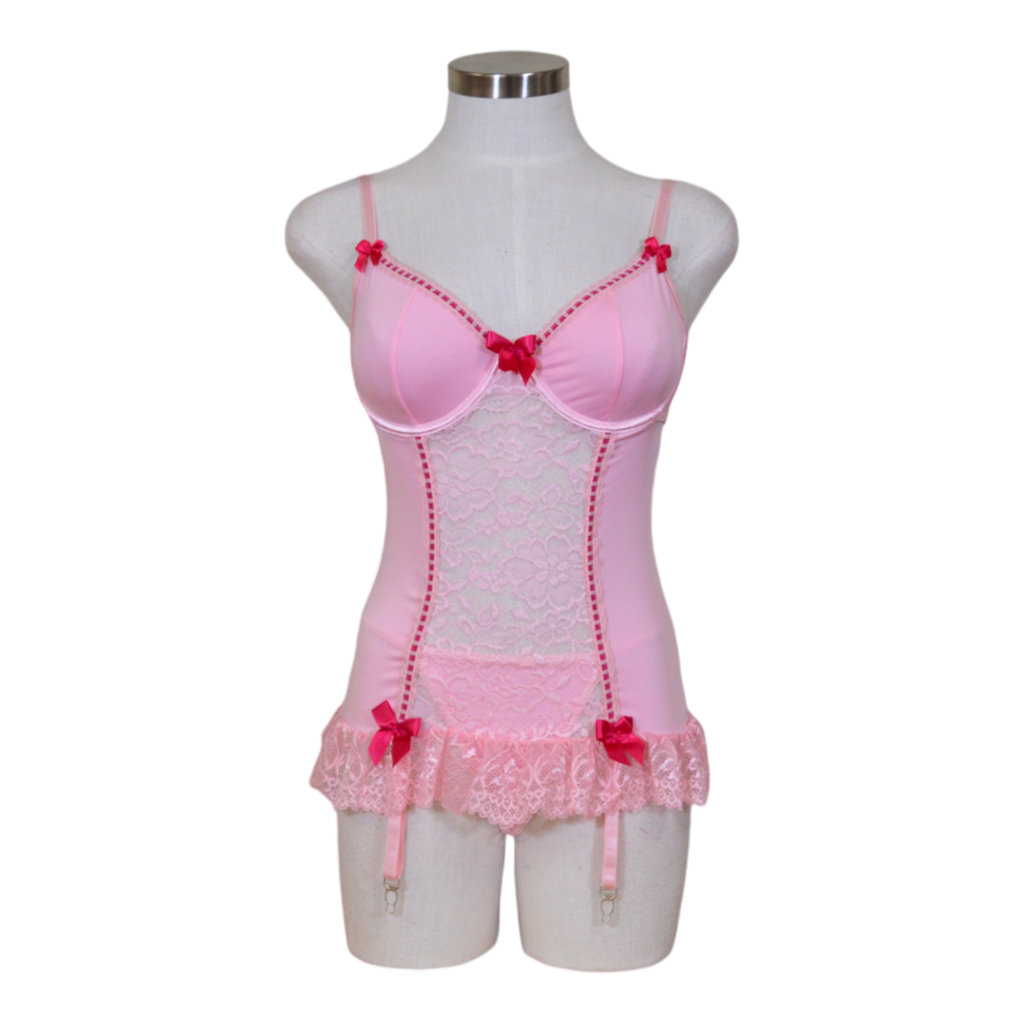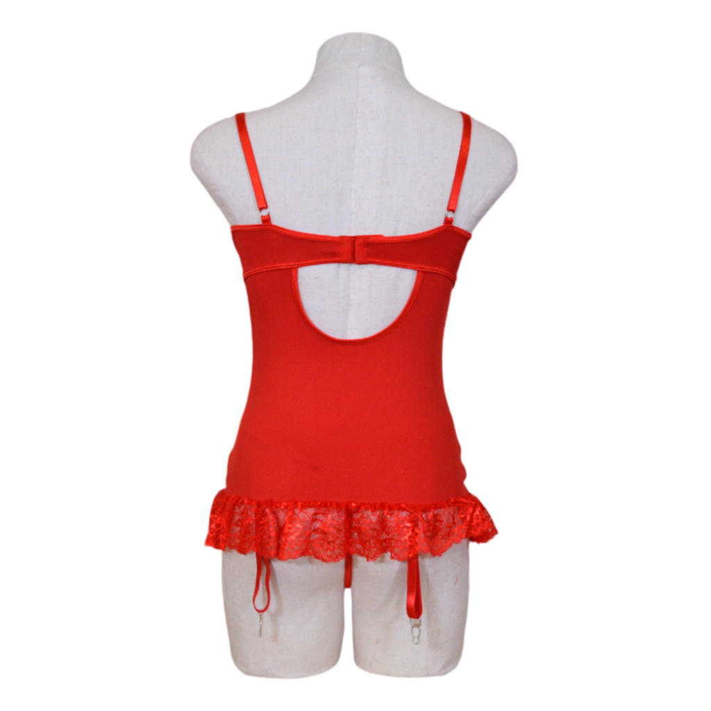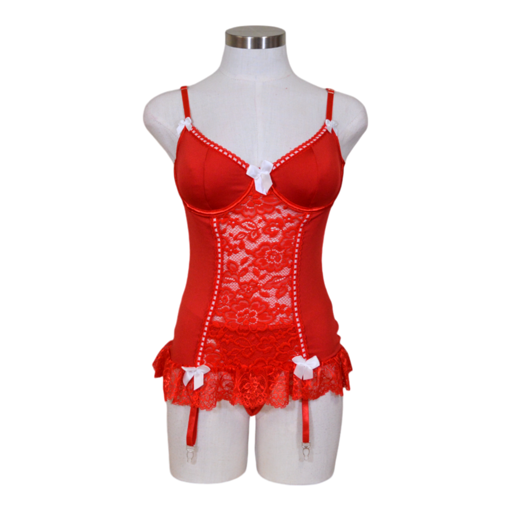 Get ready to spice things up this Christmas Day with this playful babydoll set. This lace babydoll features a darling bodice with cute bows and supportive underwire. Complete the look with garter straps for a fun and flirty touch.