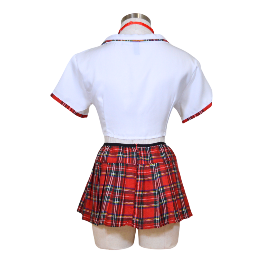 Get ready to rock the schoolgirl look with this set! This flirty ensemble features a white tie top, plaid pleated skirt, and necktie for that perfect touch of preppy charm. Plus, with an extra plaid necktie, you'll be sure to turn heads. (School uniform never looked so good!) Also available in curvy sizing.