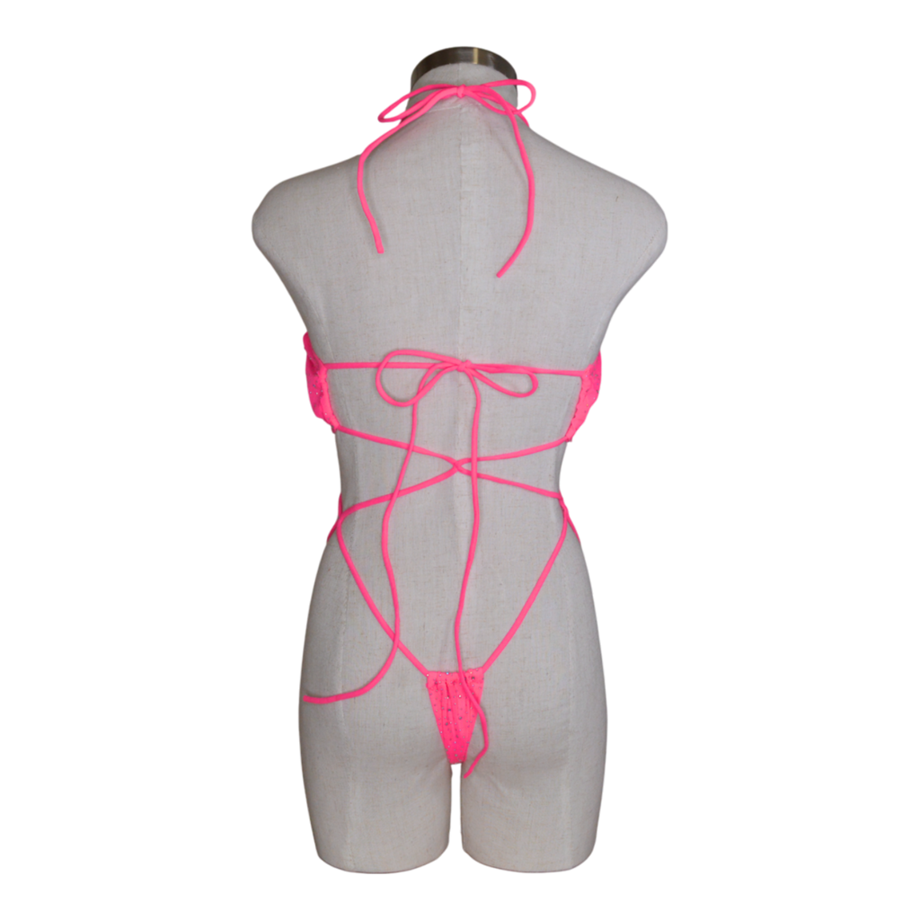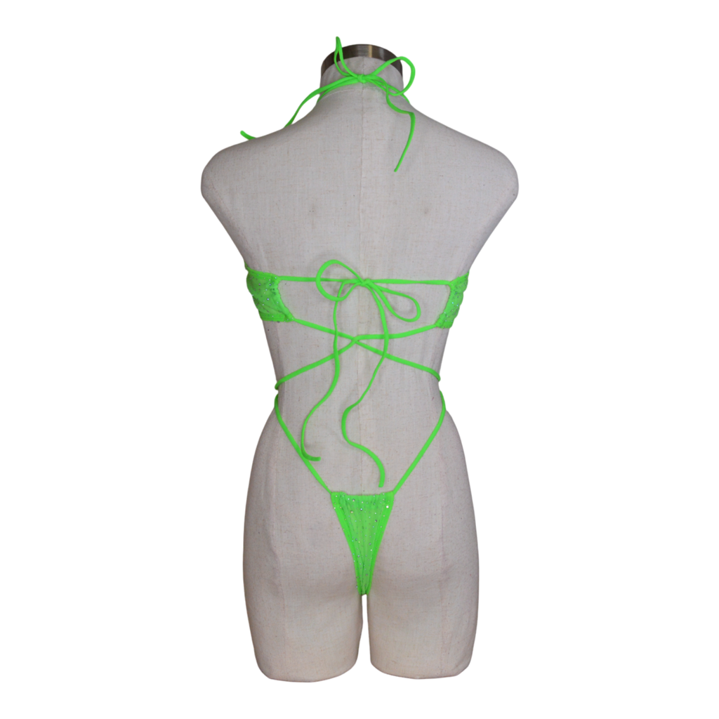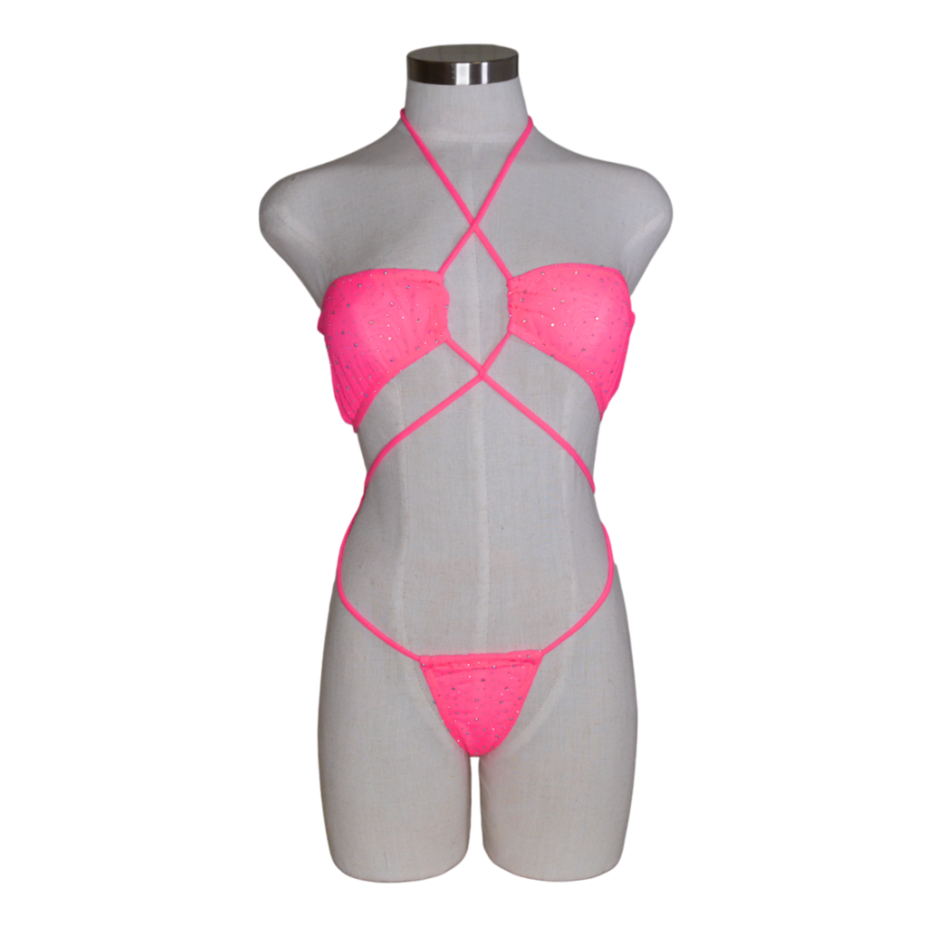 Tempt and tease in this daring rhinestone bikini bodysuit by Leg Avenue. The strappy wrap-around detail and jaw-dropping micro-bikini design are sure to leave them wanting more. Whether you're heating things up in the bedroom or making waves poolside, this sexy lingerie promises to captivate.