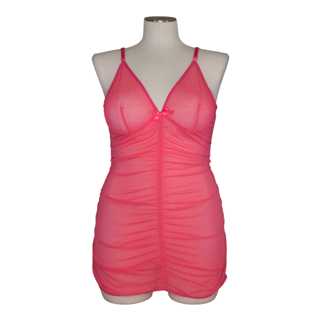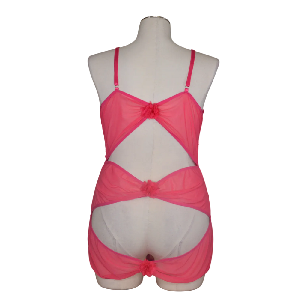 Slip into pure romance with this enchanting pink ruched baby doll that's as flirty as it is flattering. The segmented back features delicate flower-like clusters that add an unexpected touch of whimsy and dimension. Soft, stretchy fabric hugs your curves while the playful design keeps things fun and flirty. Perfect for date night or whenever you want to feel absolutely irresistible.