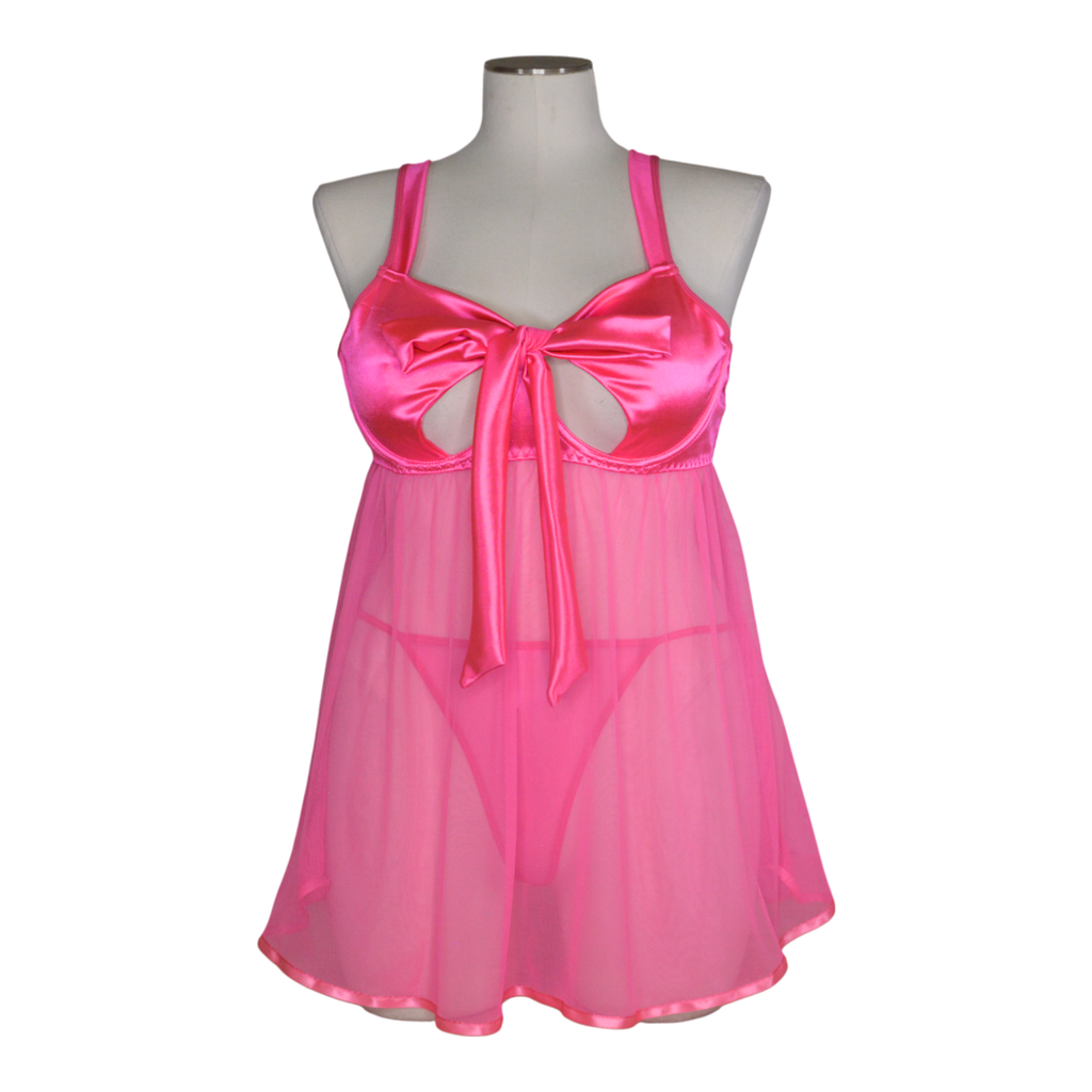 Slip into pure romance this Valentine's Day with our hot pink baby doll—a flirty essential that's ready for anything. Tie it up with a silky bow for an adorable look, or leave it open cup for a bolder moment. Soft, sultry, and designed to make you feel irresistible, this playful piece is your ticket to a night of pure passion and fun.